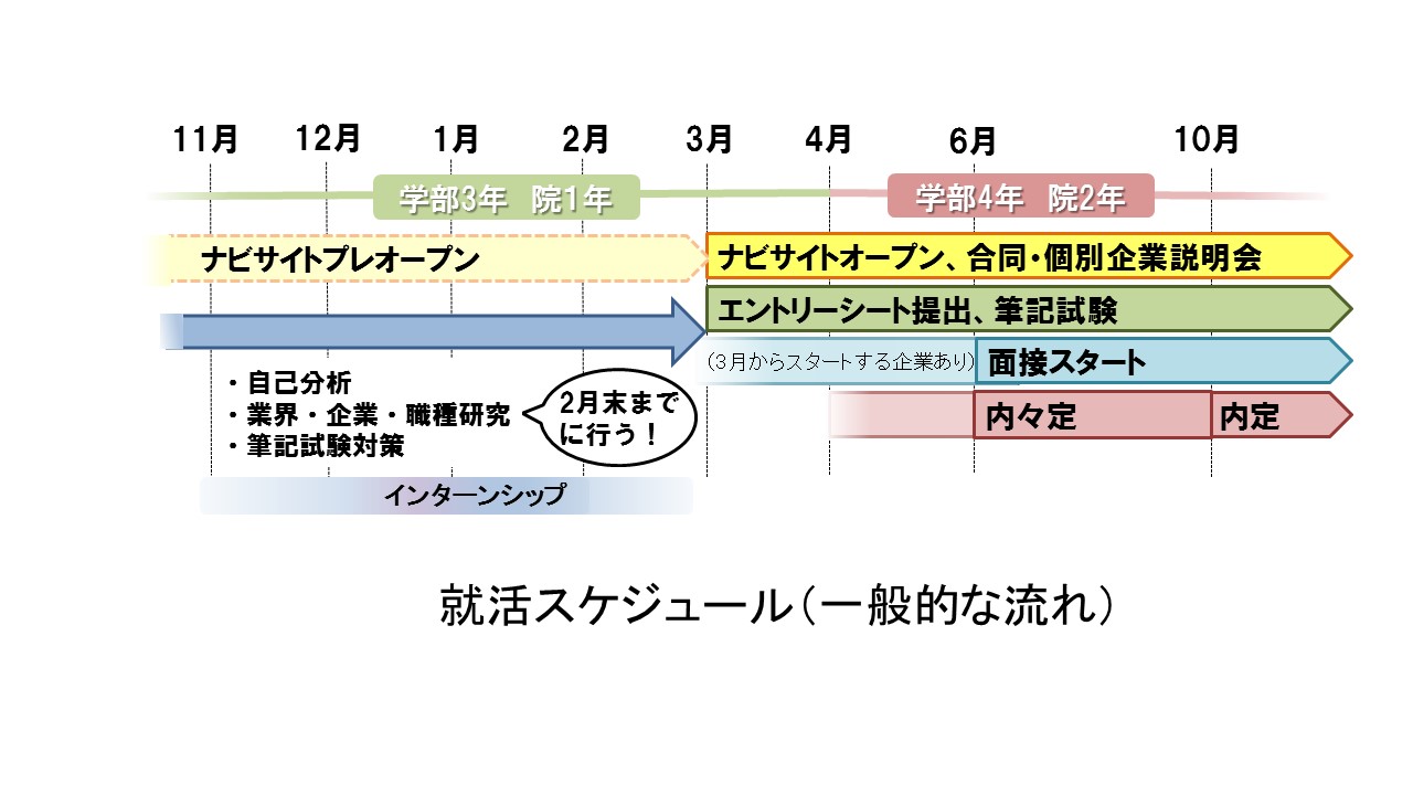 就職活動では、学生は企業の採用スケジュールにあわせた活動の展開が求められます。