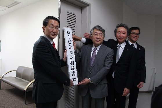 2月17日、本学医学部附属病院に「ロービジョン相談窓口」が開設され、平井鳥取県知事をはじめ、関係者による看板掲上を行いました。